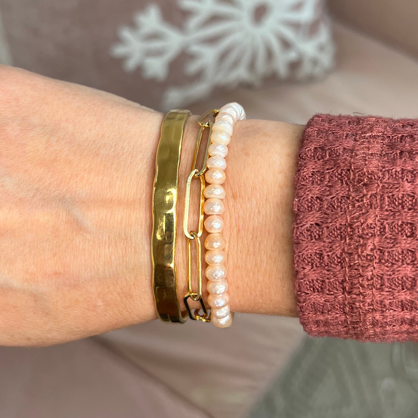 These stylish pearls not only make a statement, but also provide grounding energy. Layer them up for a sophisticated and trendy look. Add elegance to any outfit with the Not Your Mom's Pearl Bracelet.