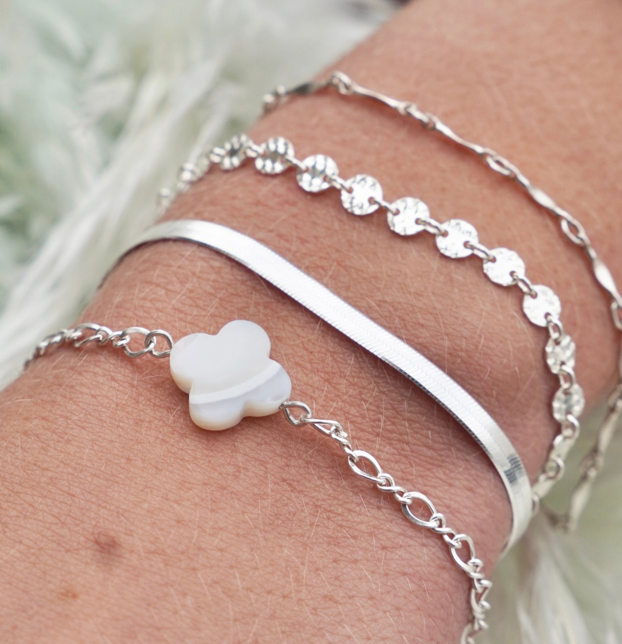 The Payton Clover- a MUST HAVE for any layer. Gorgeous clover-shaped Mother of Pearl stones wire wrapped with 🤍 just for you!