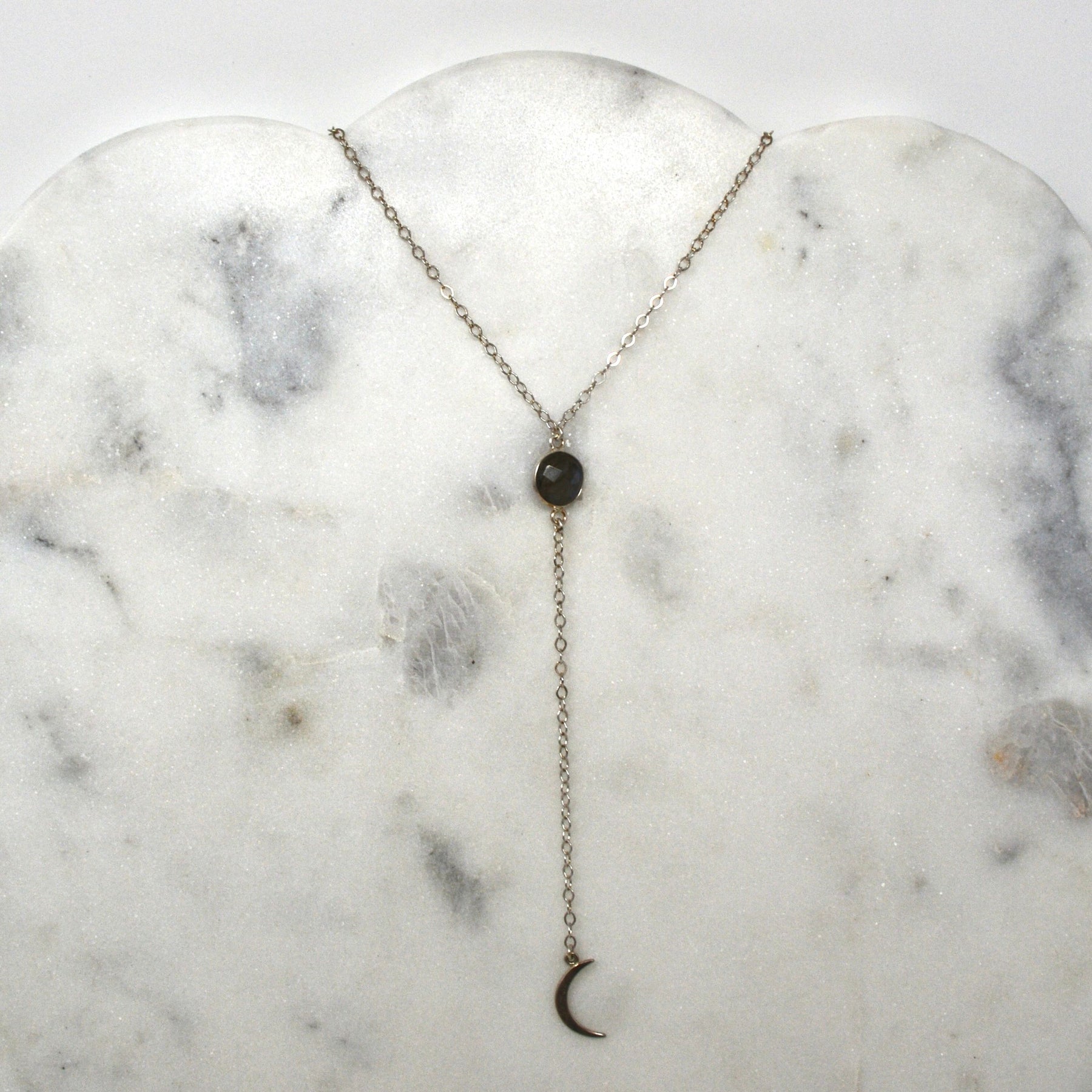 Labradorite Gem Drop with crescent moon