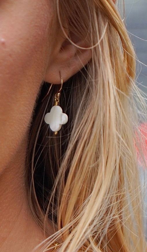 earring layer in gold with a multi layer textured hoop, a pink enamel huggie hoop, a sunflower moonstone stud and a petite classic hoop.