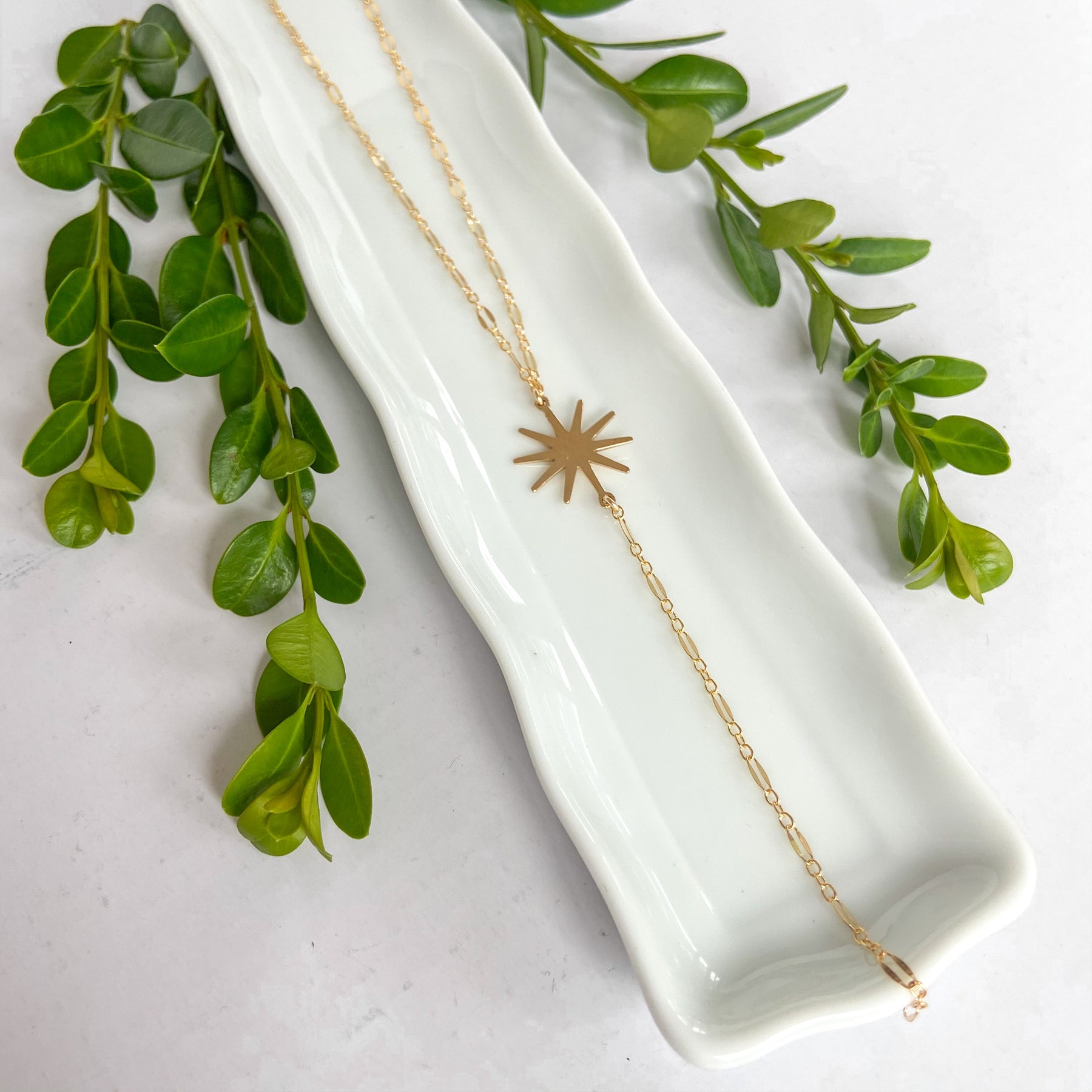 The Daystar Drop Necklace will pair with your favorite necklaces for an effortlessly beautiful layer look with a celestial twist! Wear it alone to accentuate different, beautiful necklines. This necklace will leave you starry-eyed!