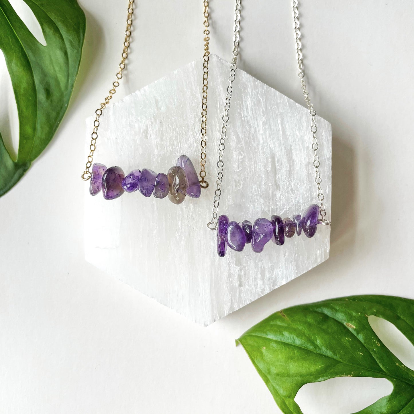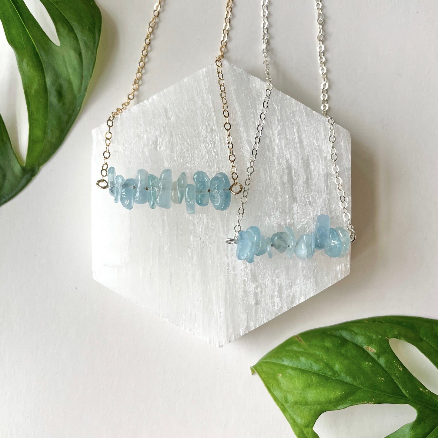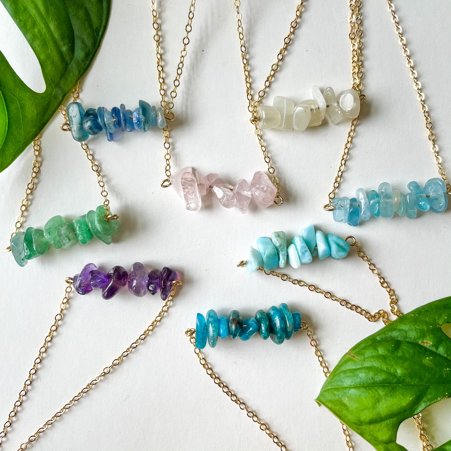 The Seabreeze Chip Necklace is made with a wide range of stones to best suit your style! Add a pop of color and texture to your layer with your favorite stone and meaning. The best necklace to add to your summer look from a bikini to a dress.