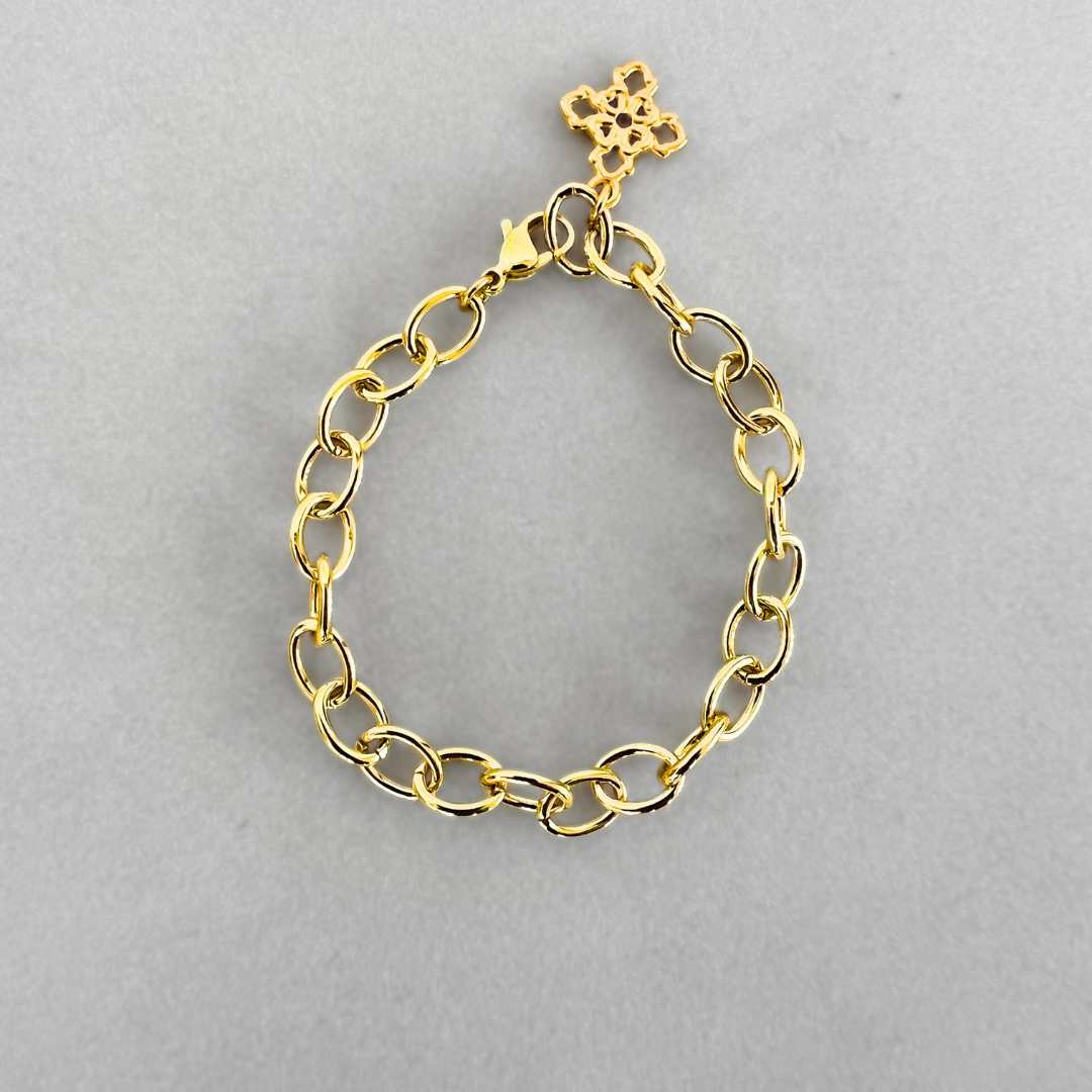 Make a bold statement with our new Cable Chain Bracelet! With its shiny interwoven links, this bracelet will take your look to the next level! Let it steal the spotlight on its own or pair it with your favorite bracelet stack!