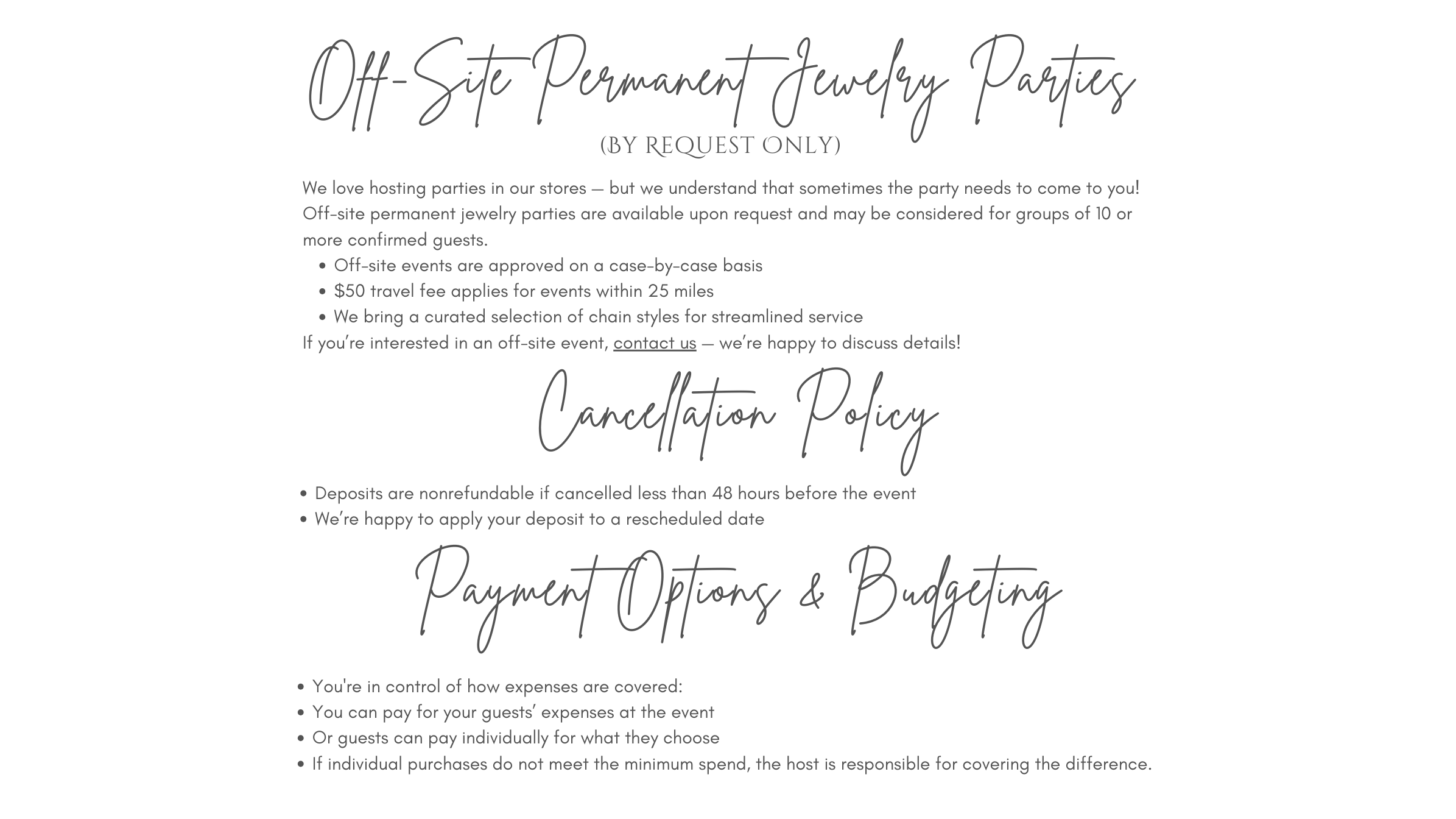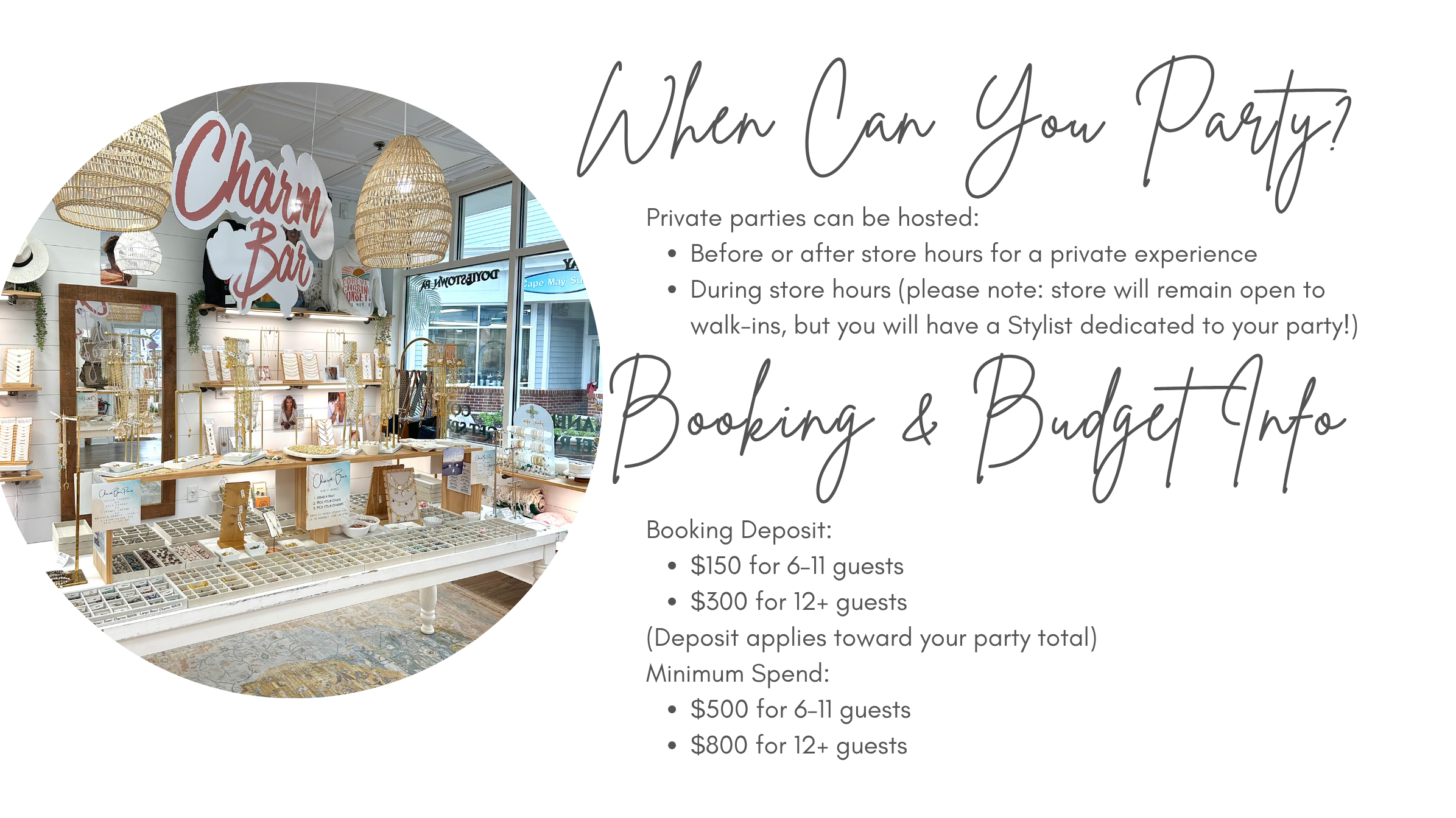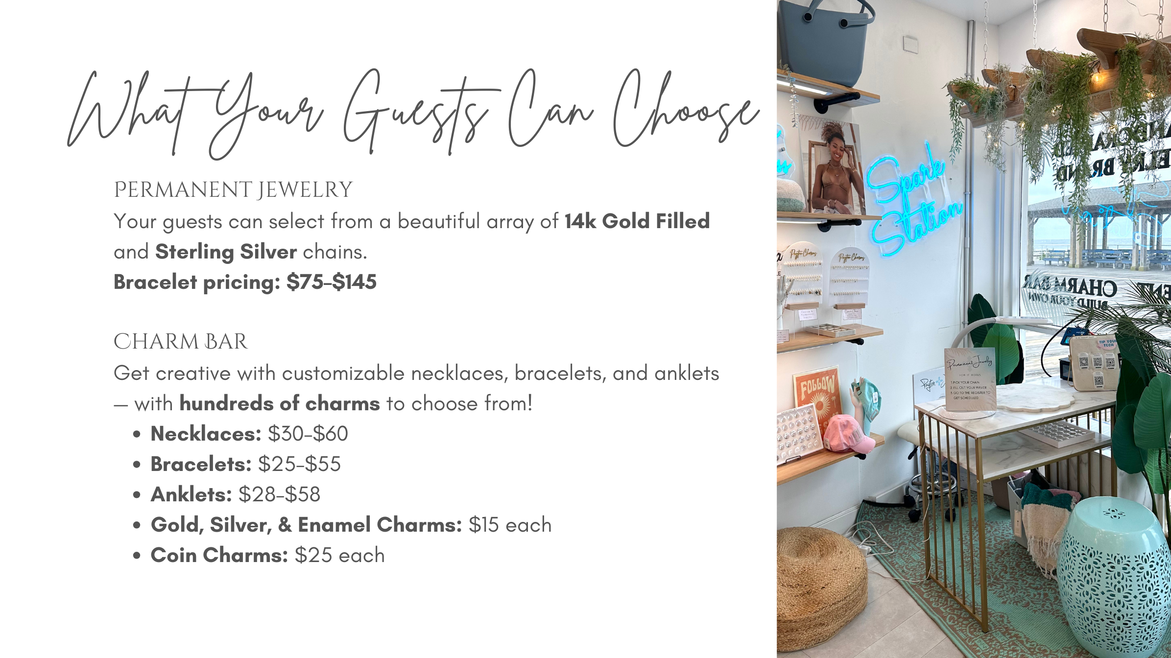 Whether you're dropping by with your besties for a quick hang or aiming for a VIP shindig with us, we've got you covered. Explore our fabulous jewelry collection, craft your own at our Charm Bar or Get Sparked with some new permanent jewelry!