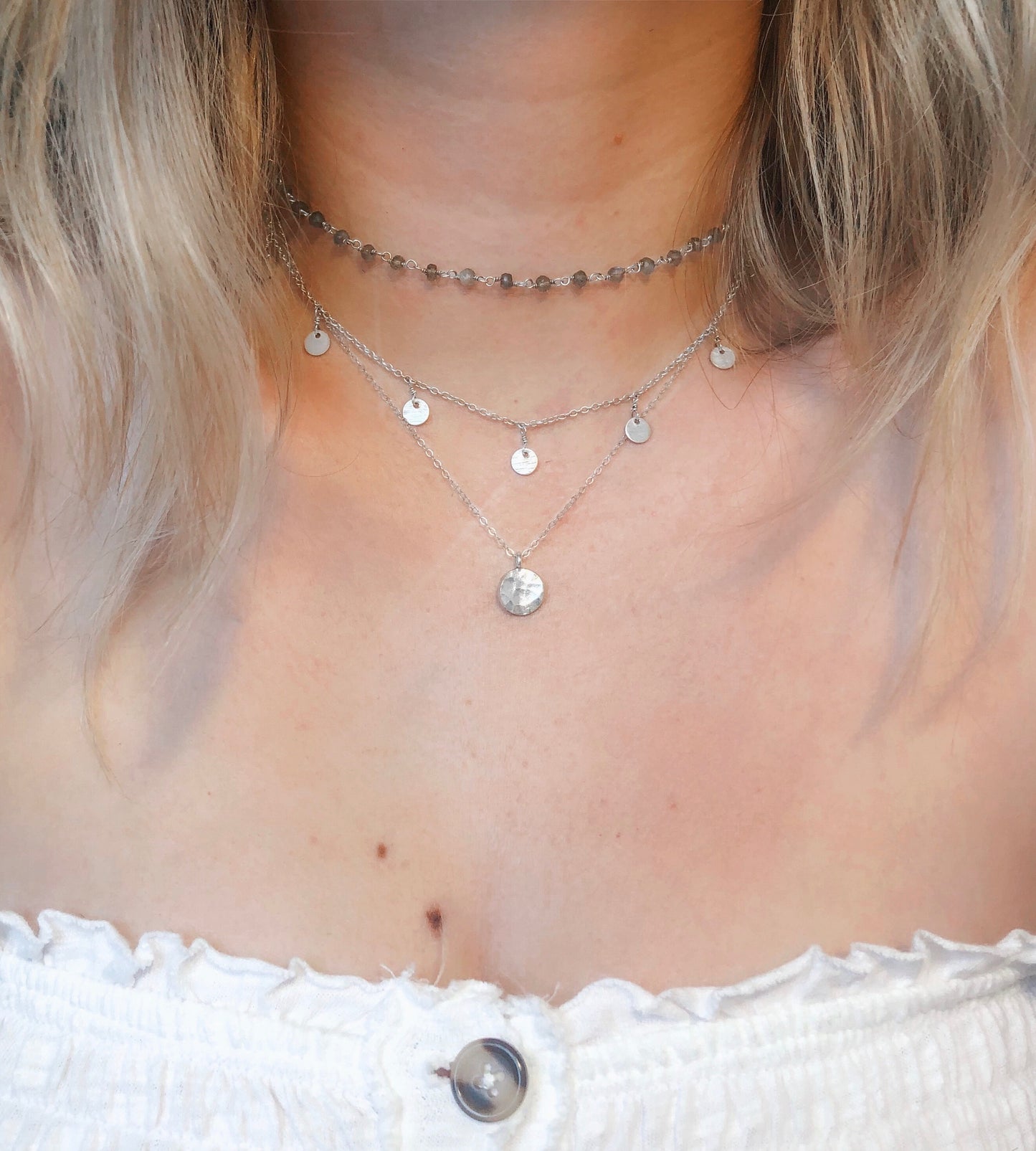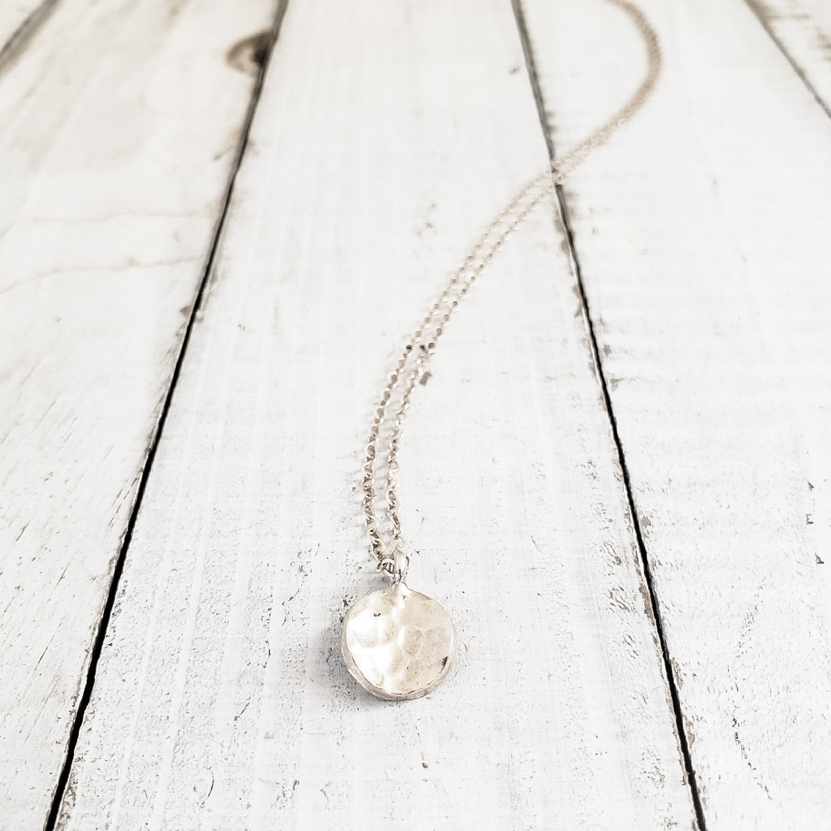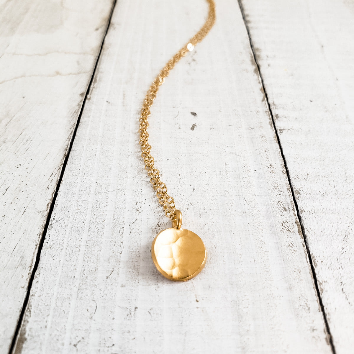 We are obsessed with the Hammered Dot Necklace, and we know that you will be too! So simple yet so conspicuous, this necklace is perfect for anyone.