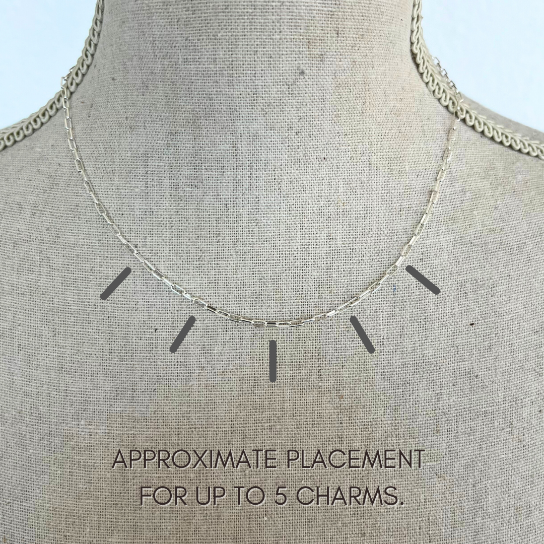 Elevate your look with our Charm Bar Mini Paper Clip Necklace. Made with lightweight, on-trend gold or silver, this 18" chain is a must-have for any fashion-forward individual. Upgrade your style and make a statement by adding charms and telling your story!