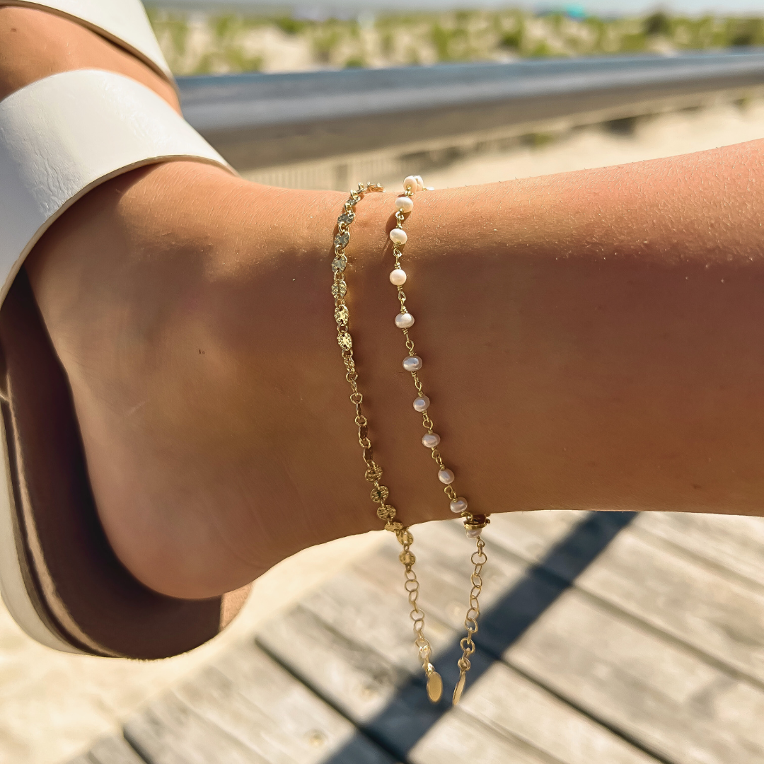The Pearl Chain Anklet is perfect for stacking and will match any outfit! This anklet will easily be your new summer favorite!