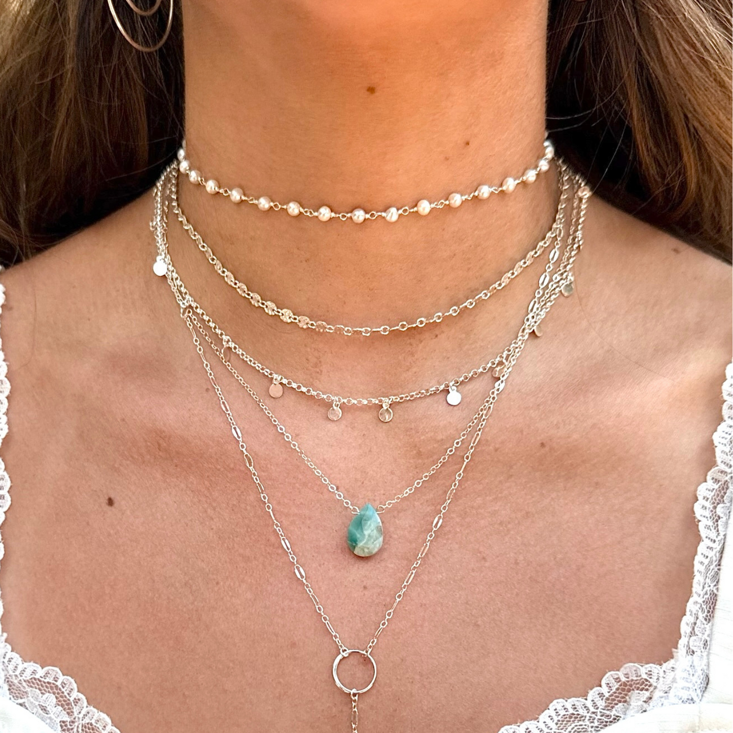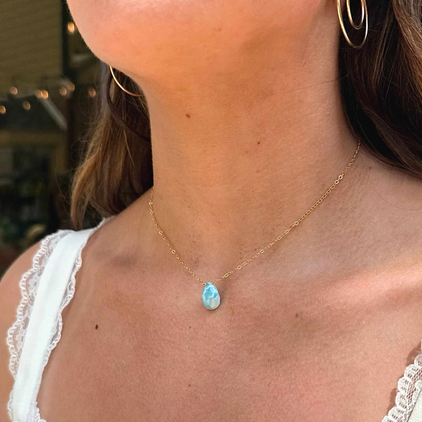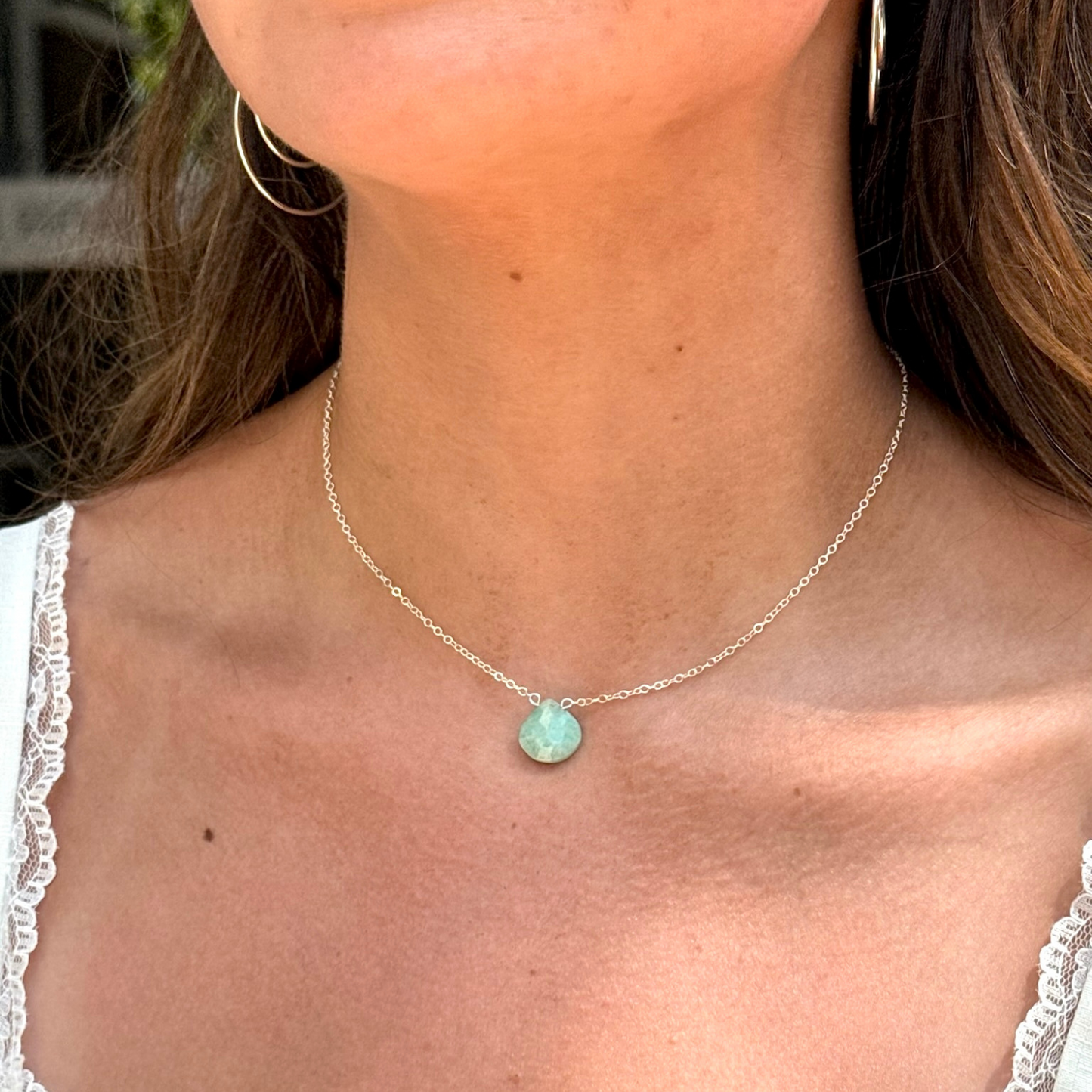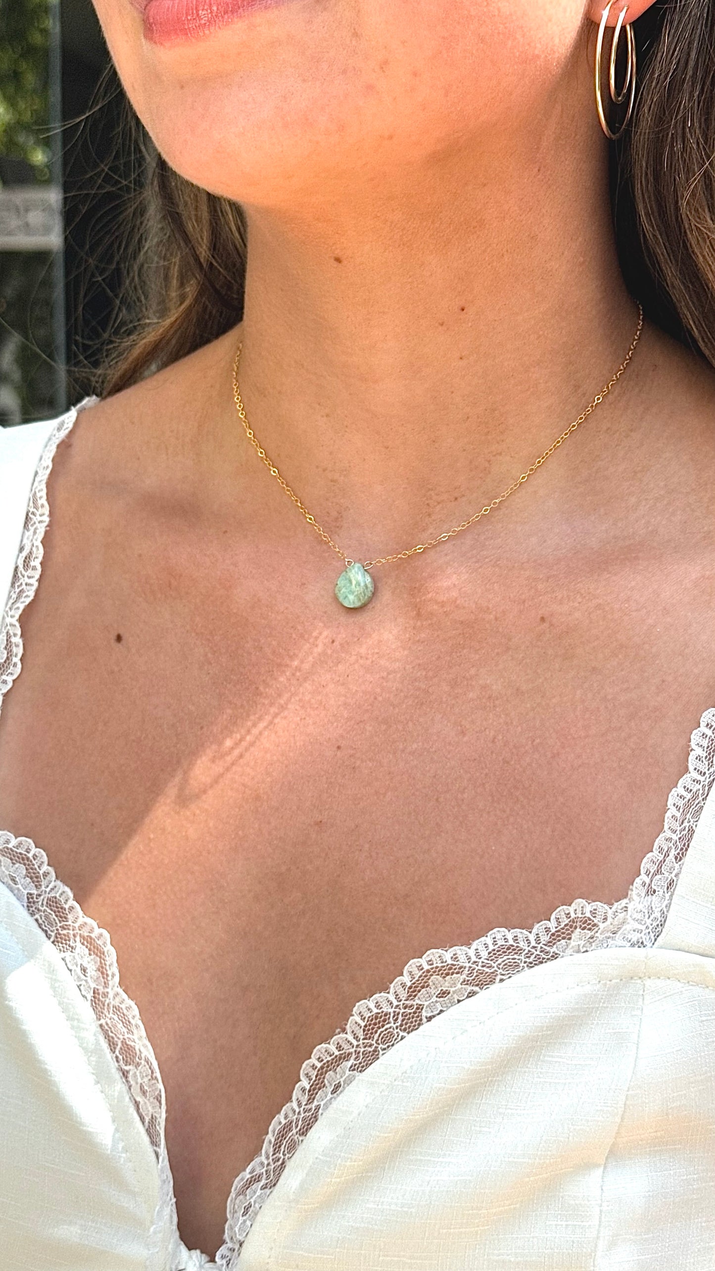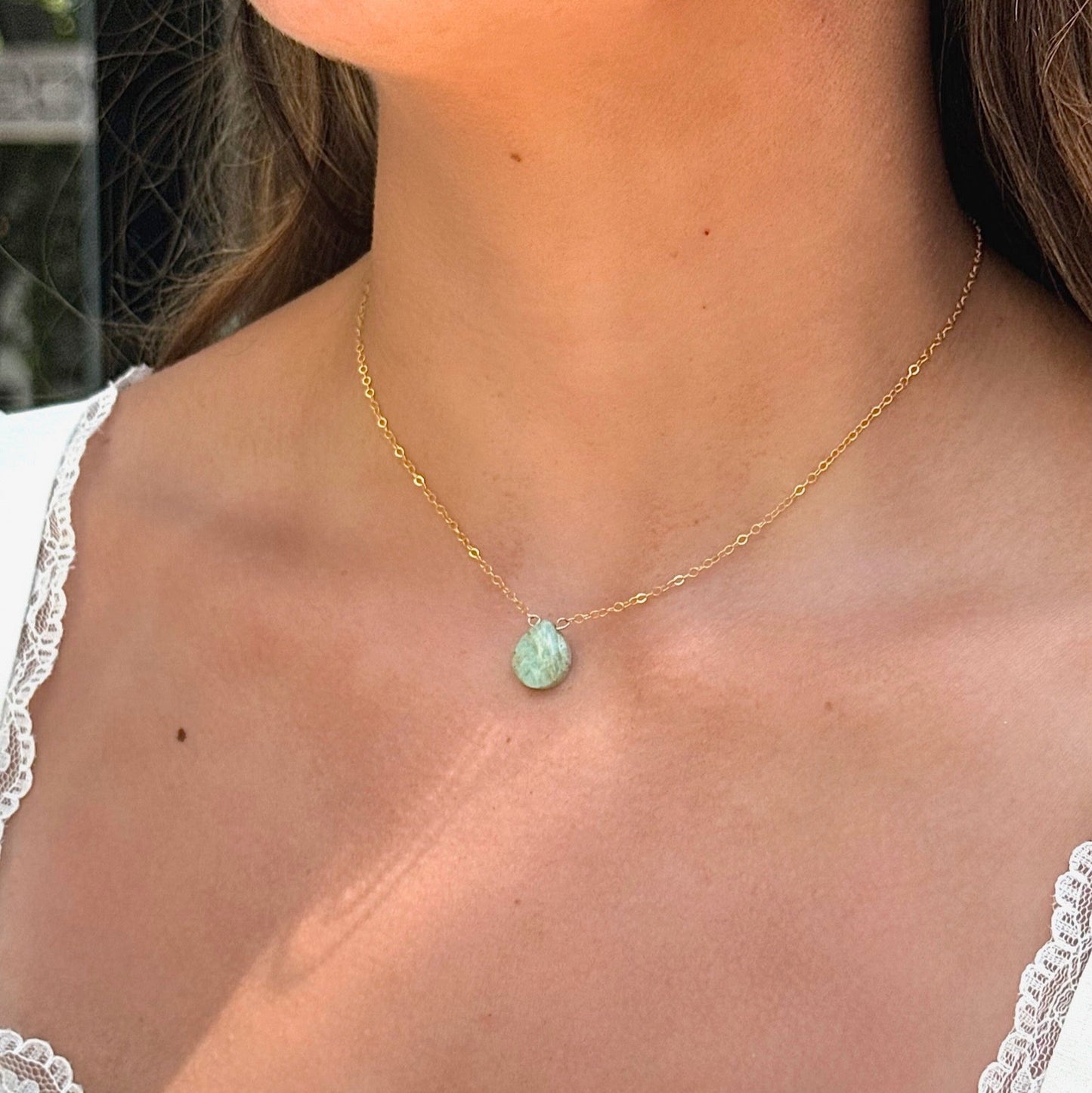 A little reminder that magic lives in the everyday. The Perfect Day Necklace features a smooth, natural gemstone—your choice of serene Larimar or soft, dreamy Peruvian Opal—suspended from a fine, minimalist chain in sterling silver or 14k gold fill.
